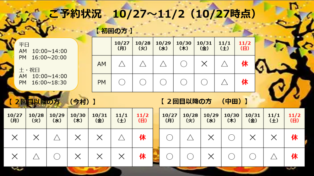 ご予約が埋まりやすくなっておりますので、ご予約をご希望の方はお早めのお問い合わせをおすすめいたします。