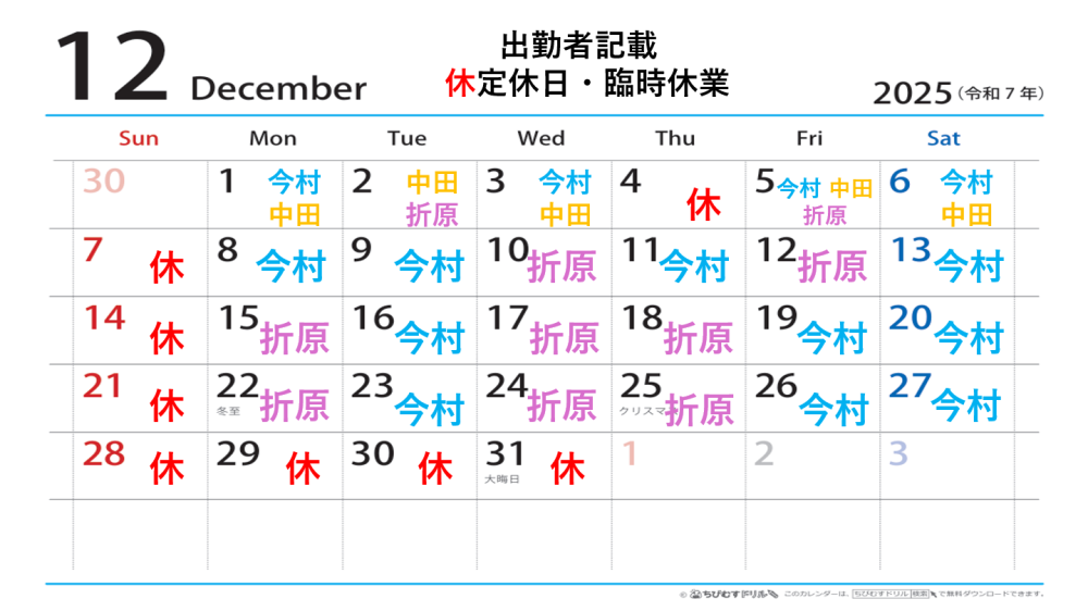 1月のご予約も開始いたしました。ご希望の方はお早めにご確認ください。